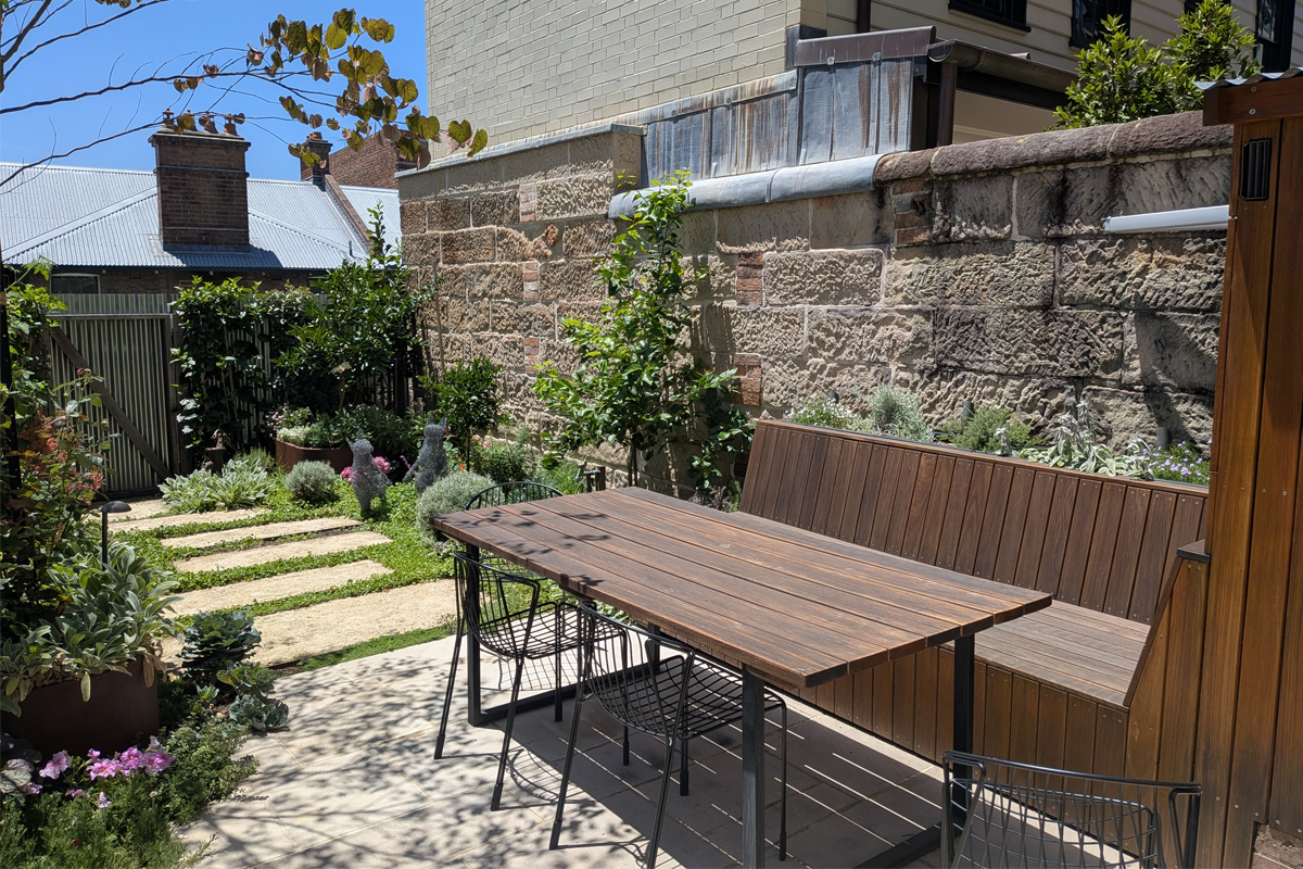 Our client approached us with a problem: they had just purchased an old home in an incredible inner-city location, with a relatively generous rear garden for the area, with a desirable north-facing aspect. At some point in the past, there had been an attempt to update the outdoor space, but it resulted in a somewhat impractical, characterless space. Not only that: the property is a heritage-listed home dating from the 19th century.