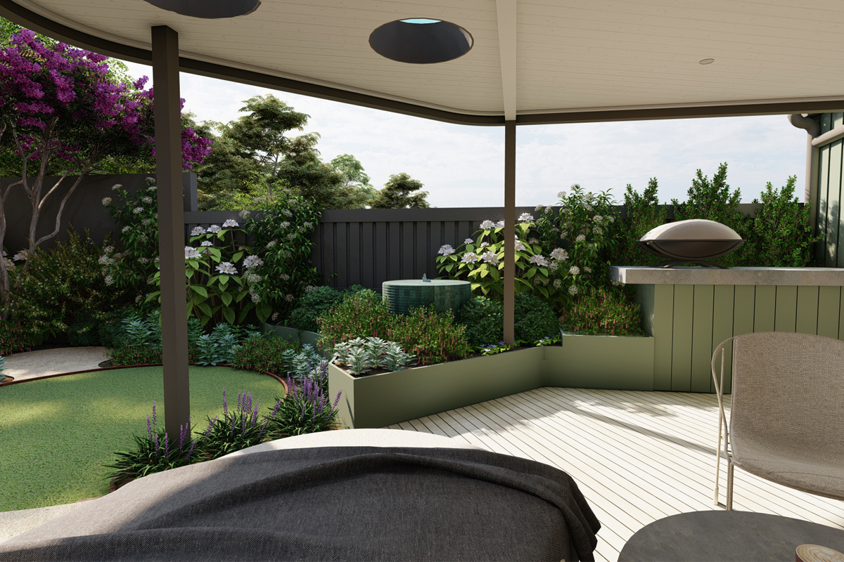 This small inner-west garden needed a refresh, the client wanted a ‘hygge’ style garden which allowed us to design cosy, intimate spaces for them to enjoy. The clients also own a very large dog, which the team had to keep in mind when designing this space. This led to us designing a custom seat featuring a large bed for their dog to lay down comfortably. The seat also features a nook for fire wood storage not only allowing for easy access but saving space in this small garden.