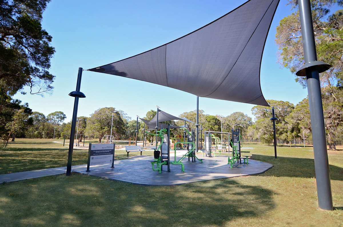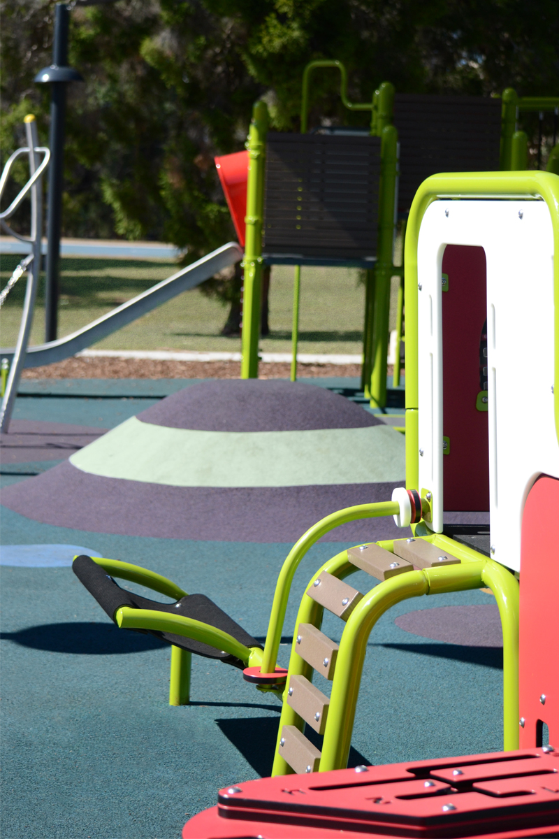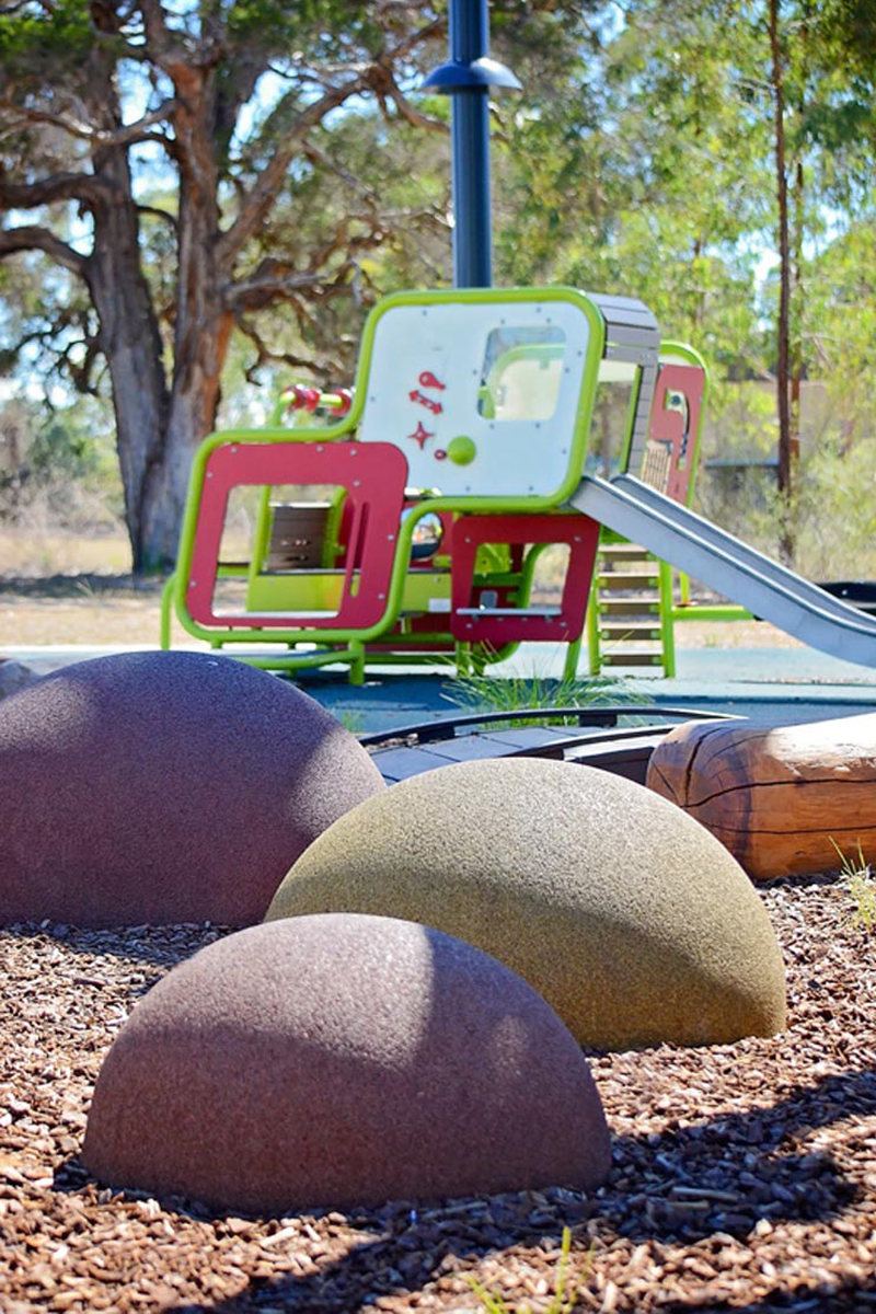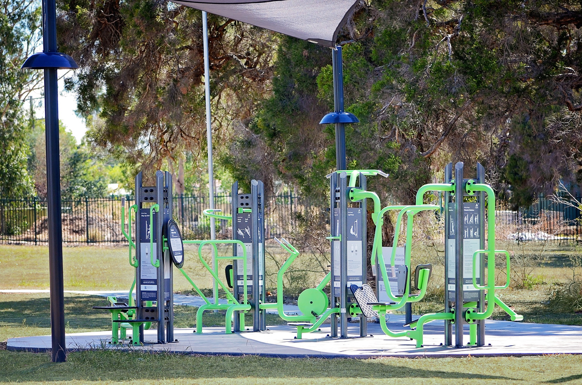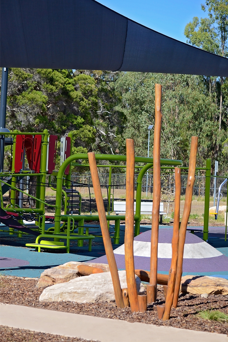 This major park offers a broad range of key facilities from an extensive off–leash dog facility that incorporates interactive landscaping such as planted mounds, tunnels and training activities, together with shelter and water. Miller Park is an extensive playground with multiple overhead shade structures giving year round protection and a blend of traditional play items and natural play structures such as log stilts, balance bridges and stones islands. Another key factor for the community was exercise and health promotion for all ages, so an all access gym was designed and located at key intervals along the pedestrian pathway circuit. The entrance to the community playground was redesigned to ensure clear site lines, enabling strong passive surveillance was maintained from the local residents at all times. The overall planting selection was all local natives, this would ensure low maintenance and longevity.