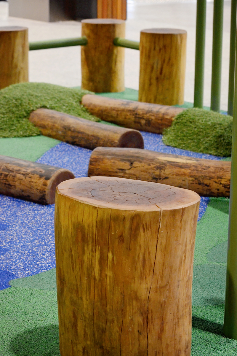 OUTHOUSE design was invited to bring the outside in for one of Australia’s premium shopping centres, by designing a unique and inclusive natural play experience. This little pocket play space for the Stockland Green Hills shopping centre, takes imagination to a whole new level. Being an internal space, this project came with the challenges of designing within an extremely limited and unusual layout, with the added impact of working with an existing tiled surface. The tiny pocket play space caters for families and children of all ages and considering all-inclusive design in small spaces.