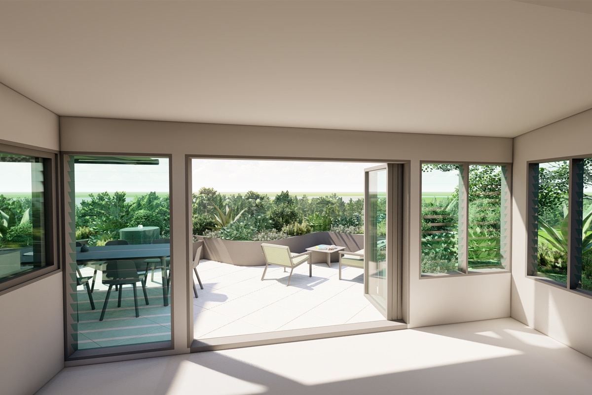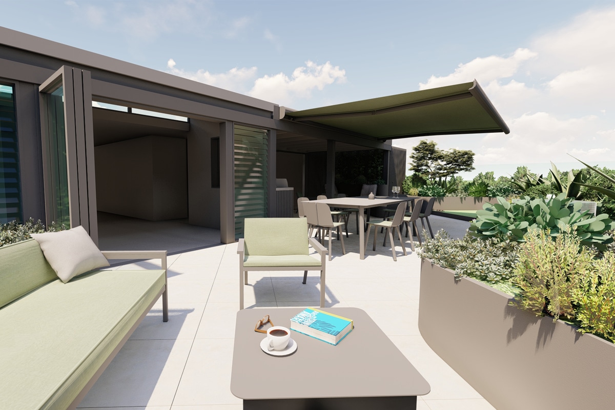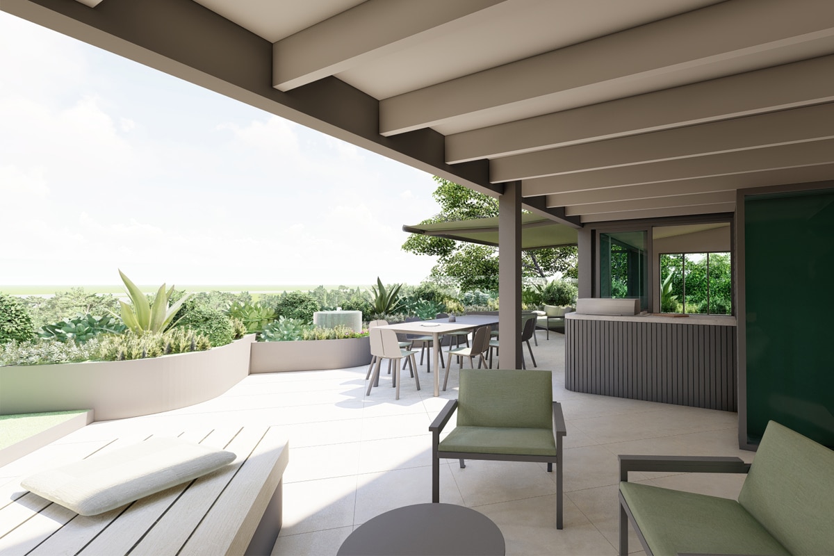 This large rooftop boasts of great ocean views, the design intent of this rooftop was to create different zones across the rooftop where you could relax and enjoy the views.
