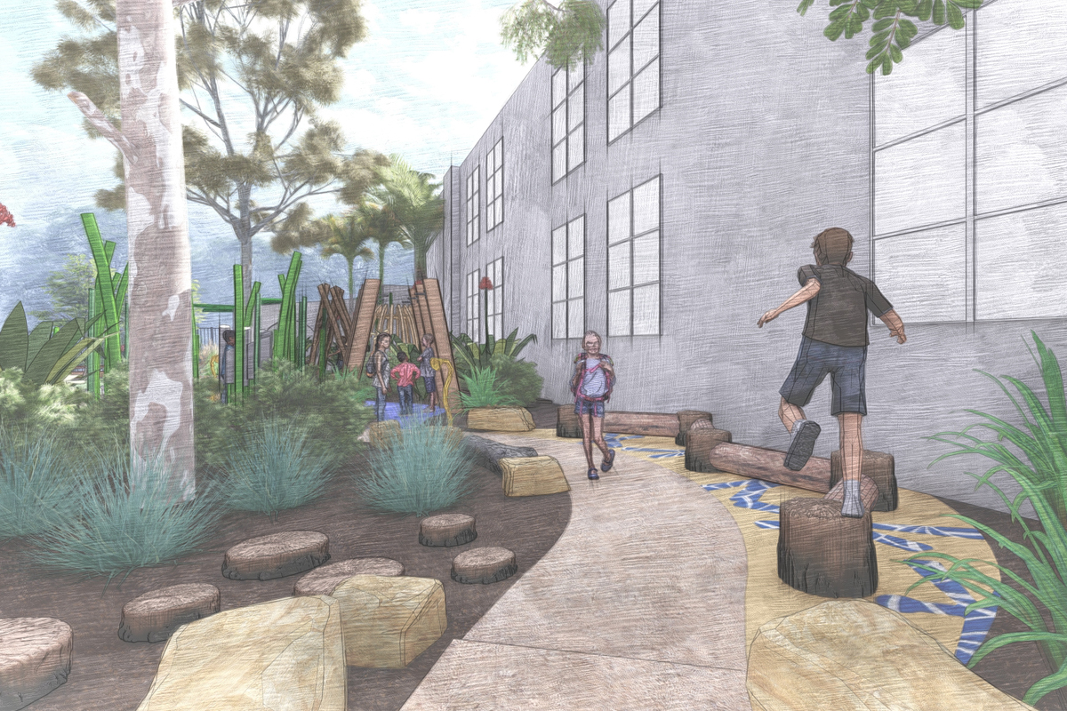 Drawing inspiration from the surrounding bushland, this playground is a wilderness of fun, designed to spark adventure, ignite imagination, and forge a deep connection with nature as students leap, climb, and explore the various play zones.