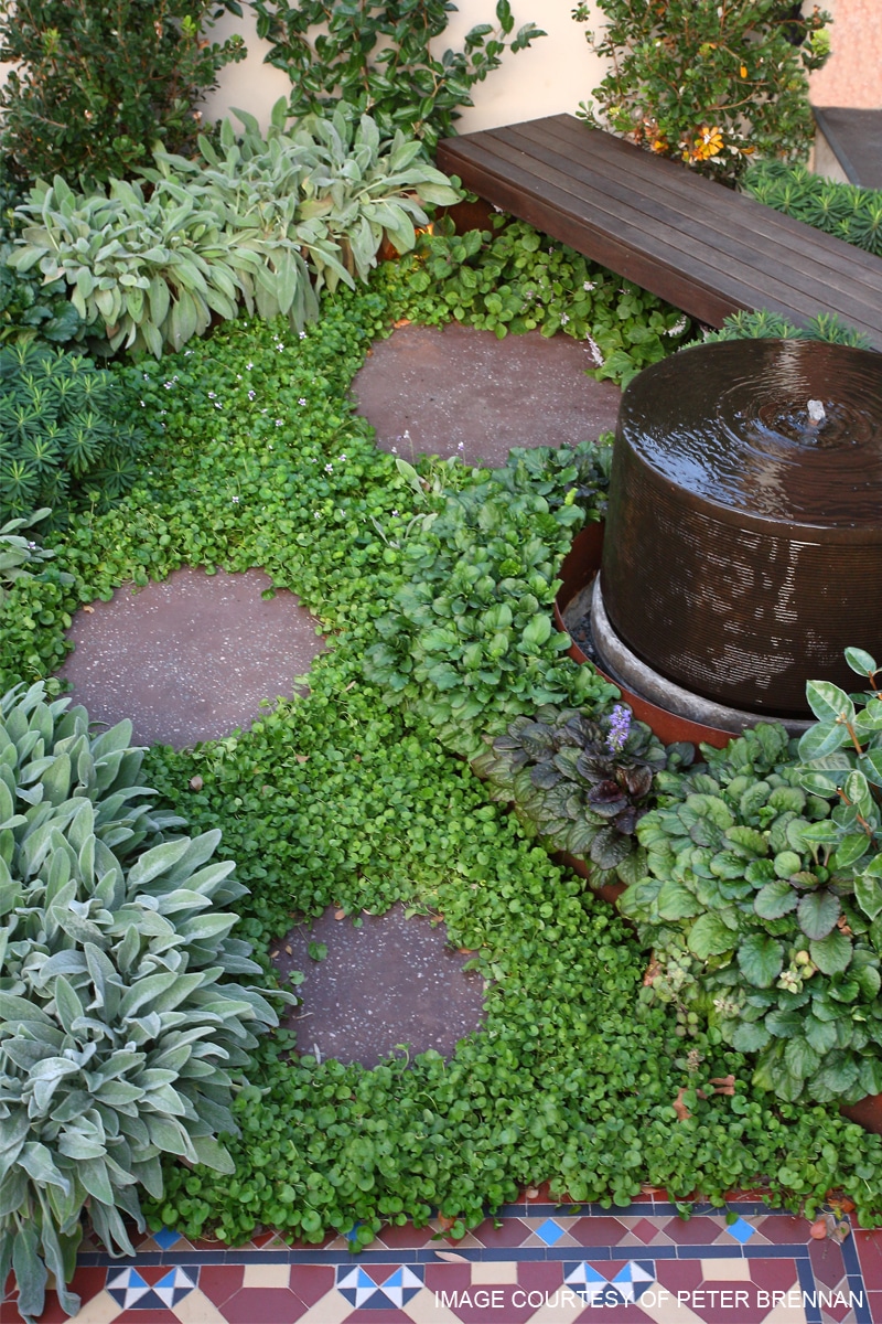 When you are ready for that mid-morning break, grab your cup of tea and take a slow step stone journey through the soft scented groundcovers and take a moment to sit and lap up the morning winter sun. The calm trickle of the water feature in the raised garden bed with the screen of the Elaeagnus macrophylla will just give you that slight sense of calm enclosure.