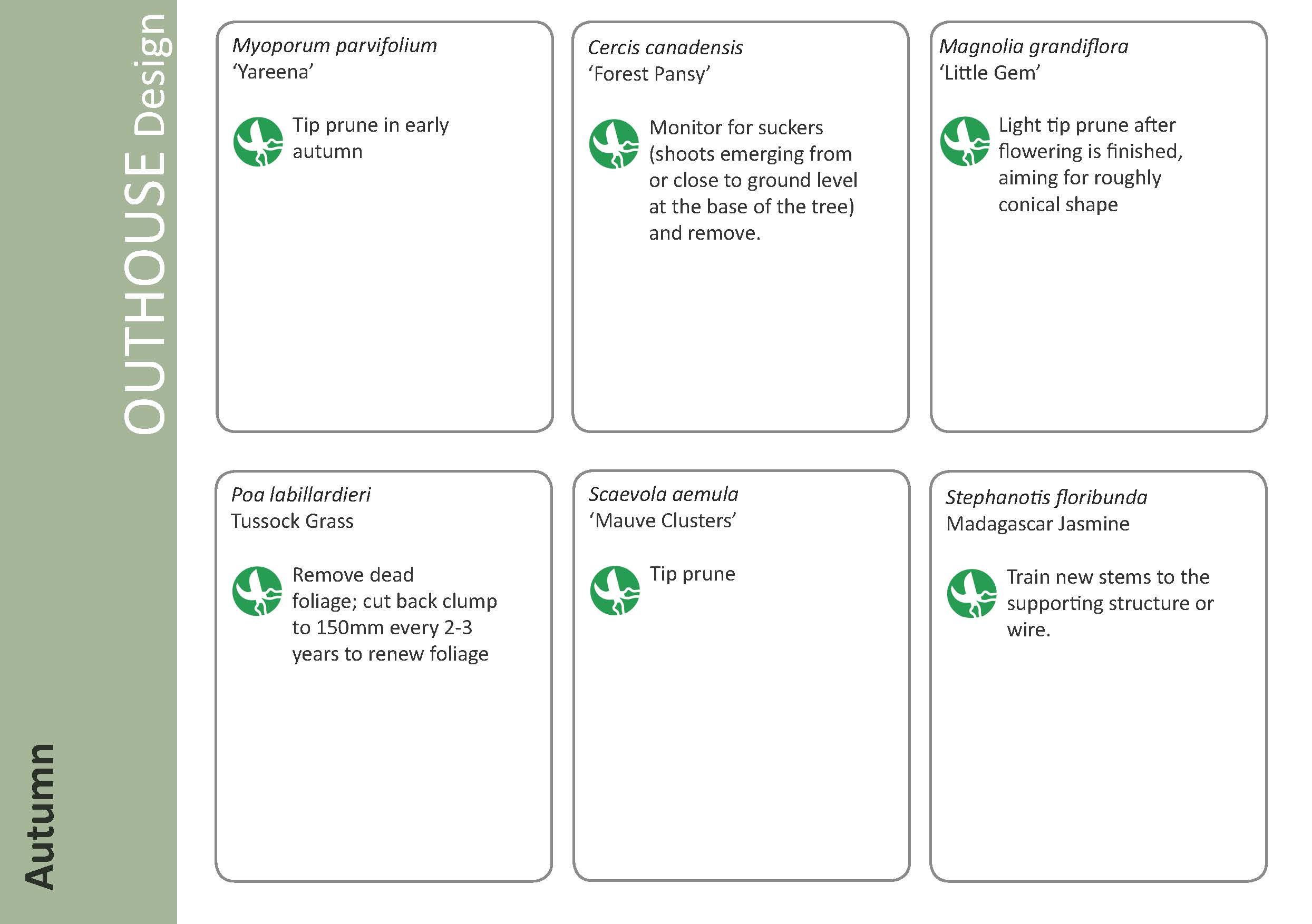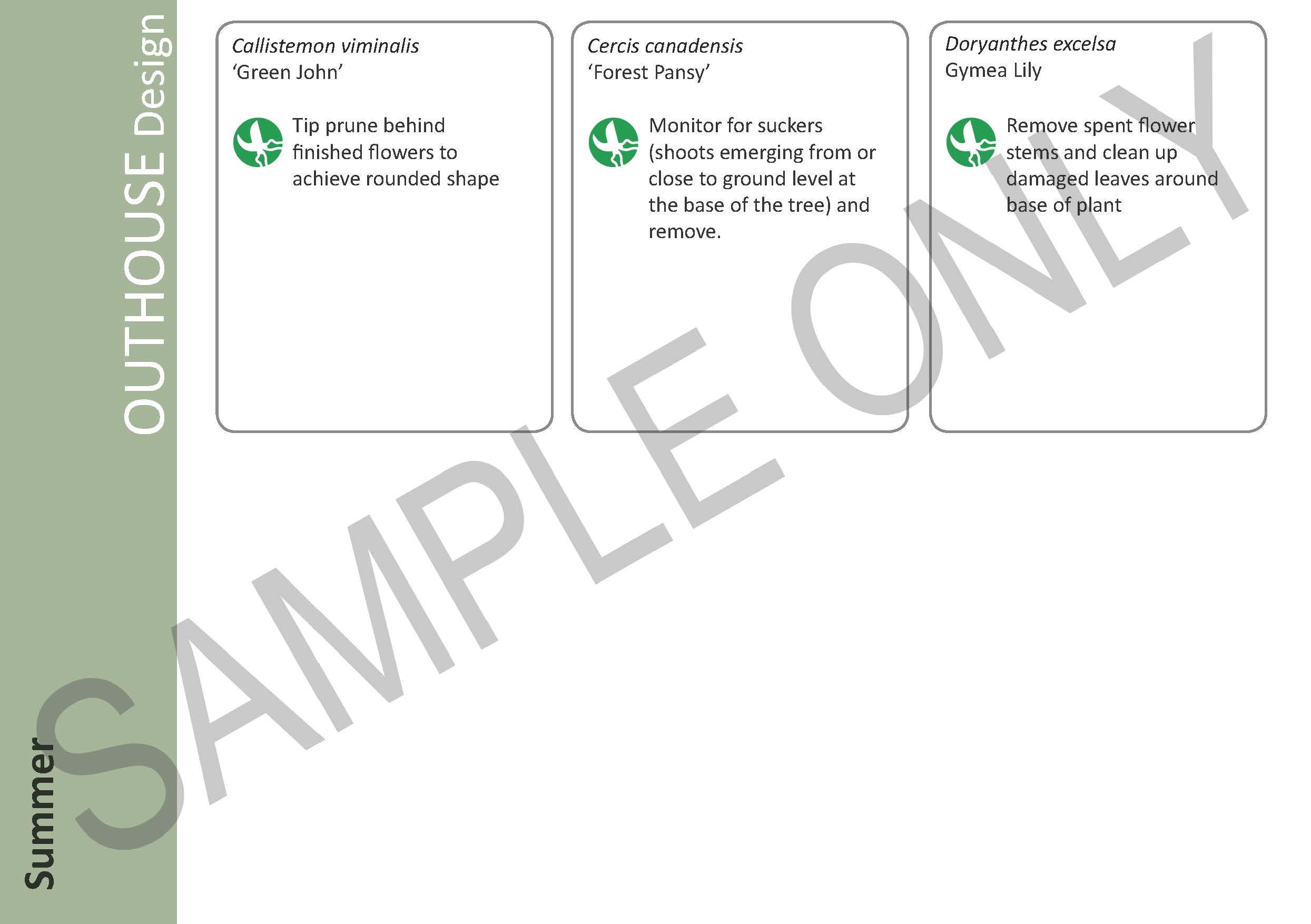 As part of this mission, we’ve designed a simple gardening calendar that will be your gateway to engaging more deeply with your garden. After an initial horticultural consultation, the OUTHOUSE design team will create a bespoke calendar that identifies the plants in your garden by name and by photo, and describes the basic gardening tasks, on a seasonal basis, that will help your garden plants thrive.